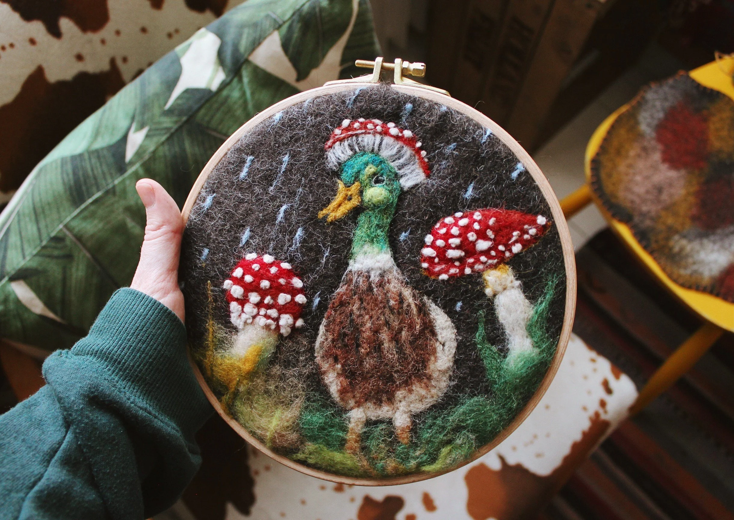 Woodpecker meets Bigfoot, 2021, wool, 20x30 cm